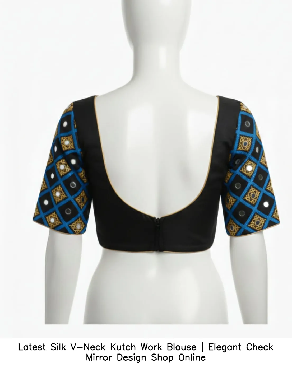 Latest Silk V-Neck Kutch Work Blouse | Elegant Check Mirror Design Features and Benefits