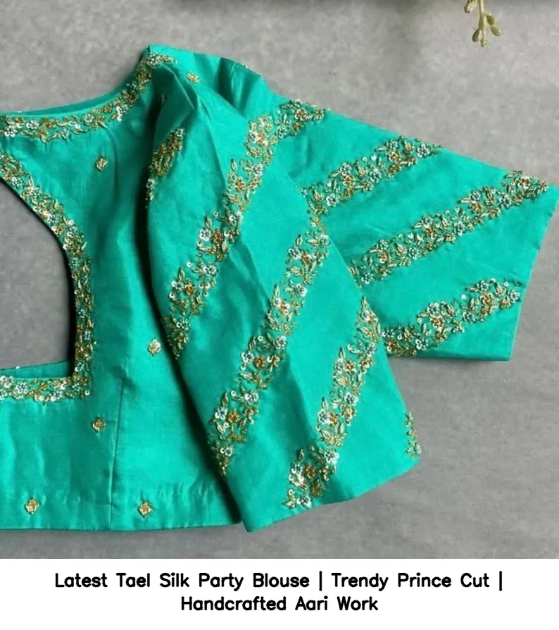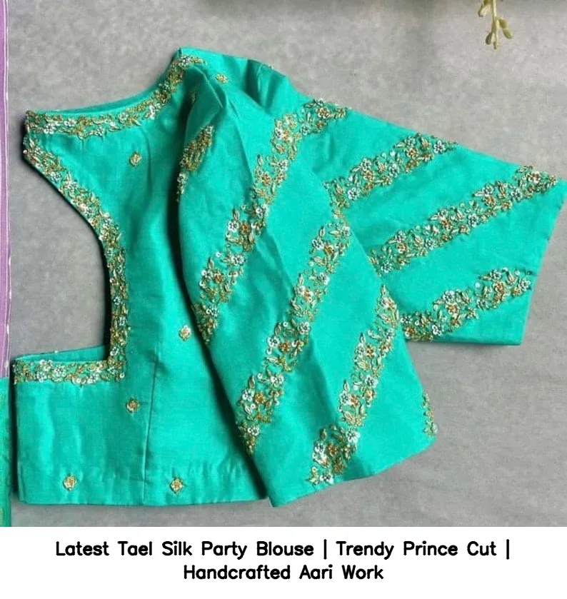 Latest Tael Silk Party Blouse | Trendy Prince Cut | Handcrafted Aari Work