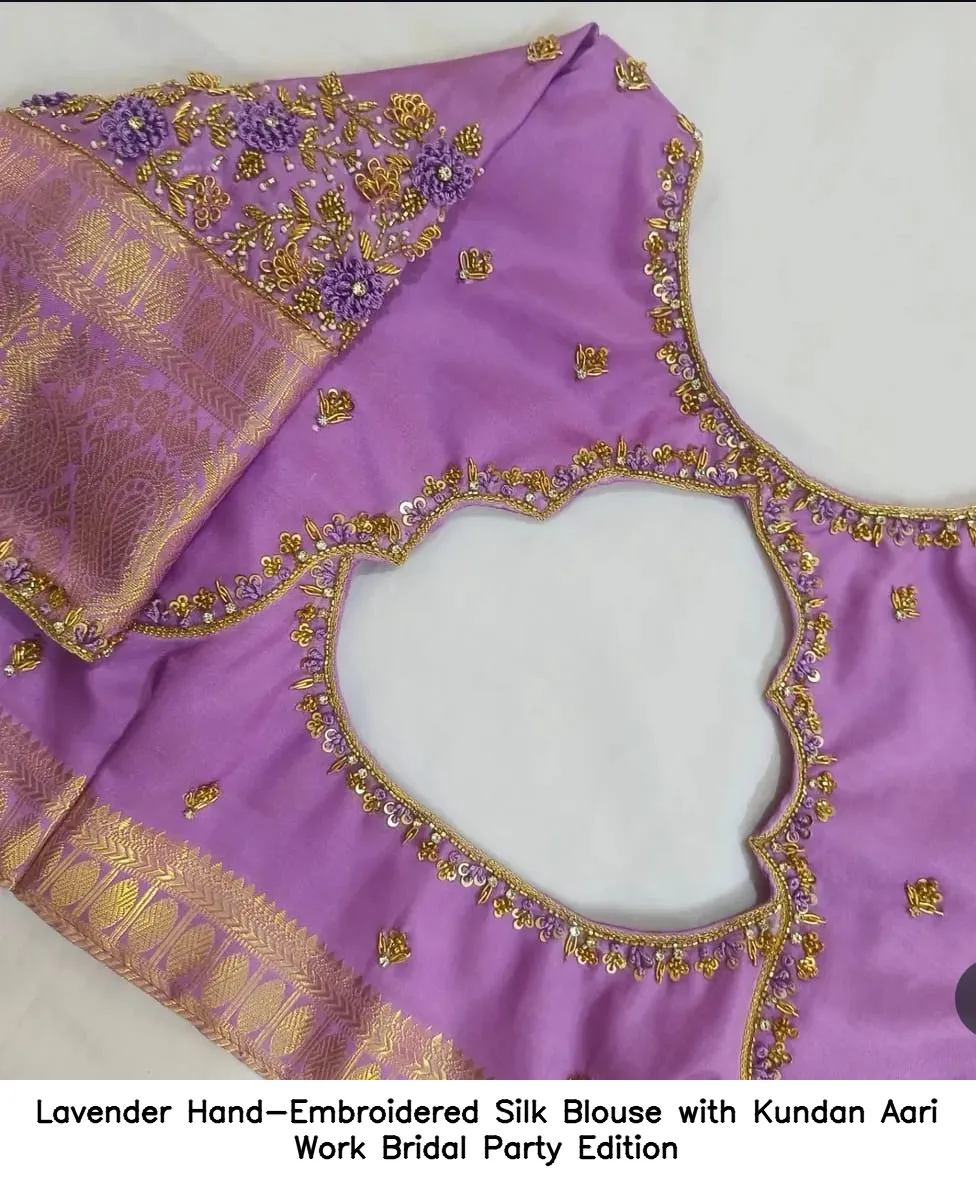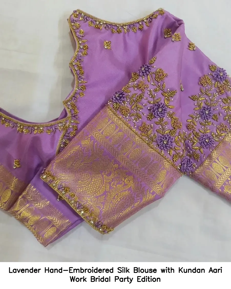 Lavender Hand-Embroidered Silk Blouse with Kundan Aari Work – Bridal Party Edition