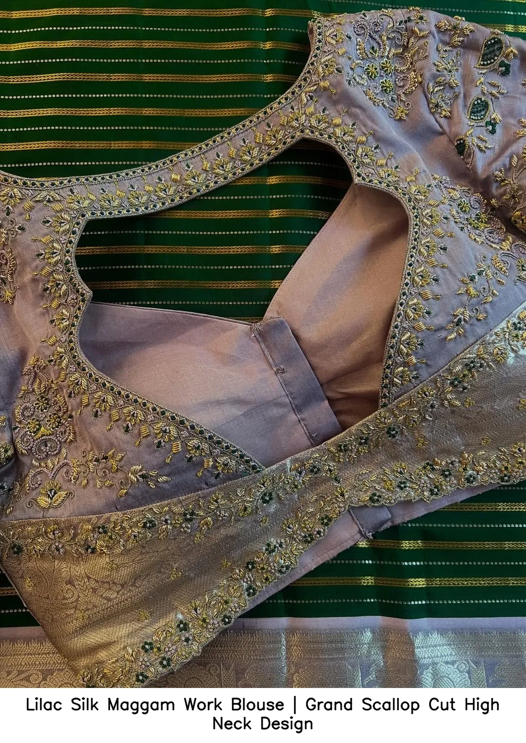 Why Choose Lilac Silk Maggam Work Blouse | Grand Scallop Cut High Neck Design?
