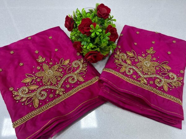 Immerse yourself in the enchanting world of ethnic elegance with our Lustrous Bead Maggam Charm blouse. Crafted to perfection, this blouse exudes timeless charm and sophistication, making it the perfect choice for special occasions and celebrations. Let’s delve into the key features that make this blouse a must-have addition to your wardrobe: