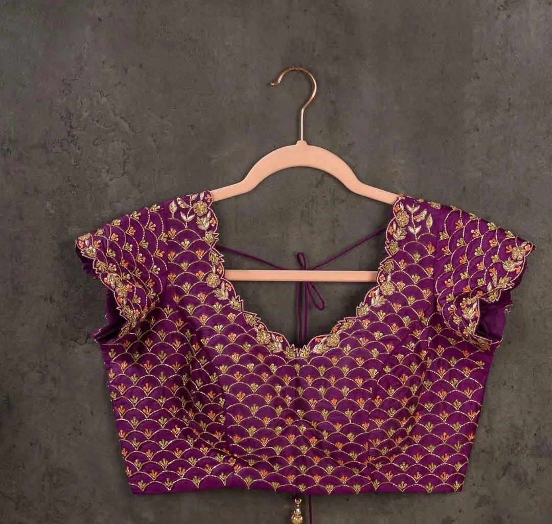 The luxurious Dark Pink Bridal Wedding Blouse is available in sizes 32, 34, 36, 38, 40, 42, 44, and 46. You can choose from a variety of colors, including Blue, Black, Red, Green, Pink, Yellow, Lavender, and Gold. For more options, browse our collection.