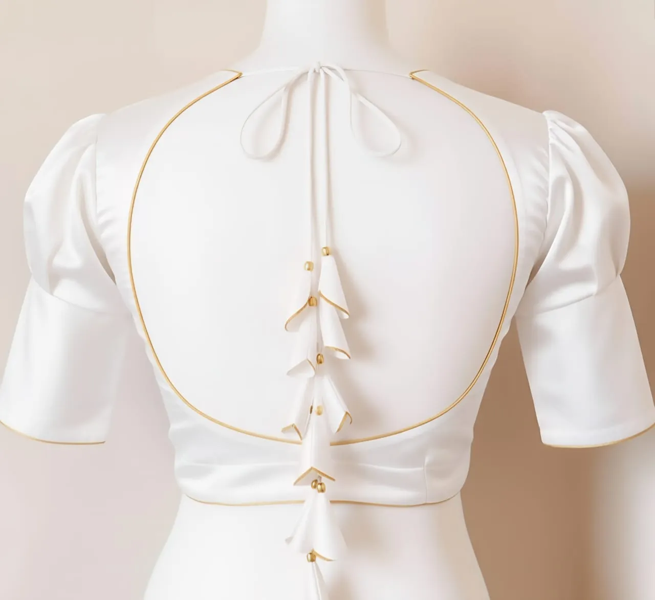 Luxury Cotton Silk Deep Back Neck Blouse ReadytoWear Perfection