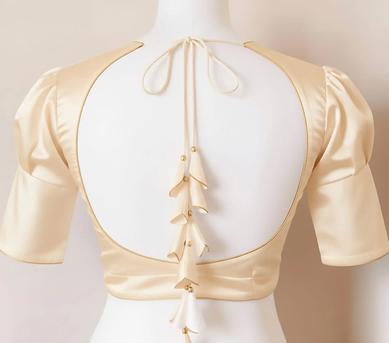 Product Name: Luxury Cotton Silk Deep Back Neck Blouse ReadytoWear Perfection