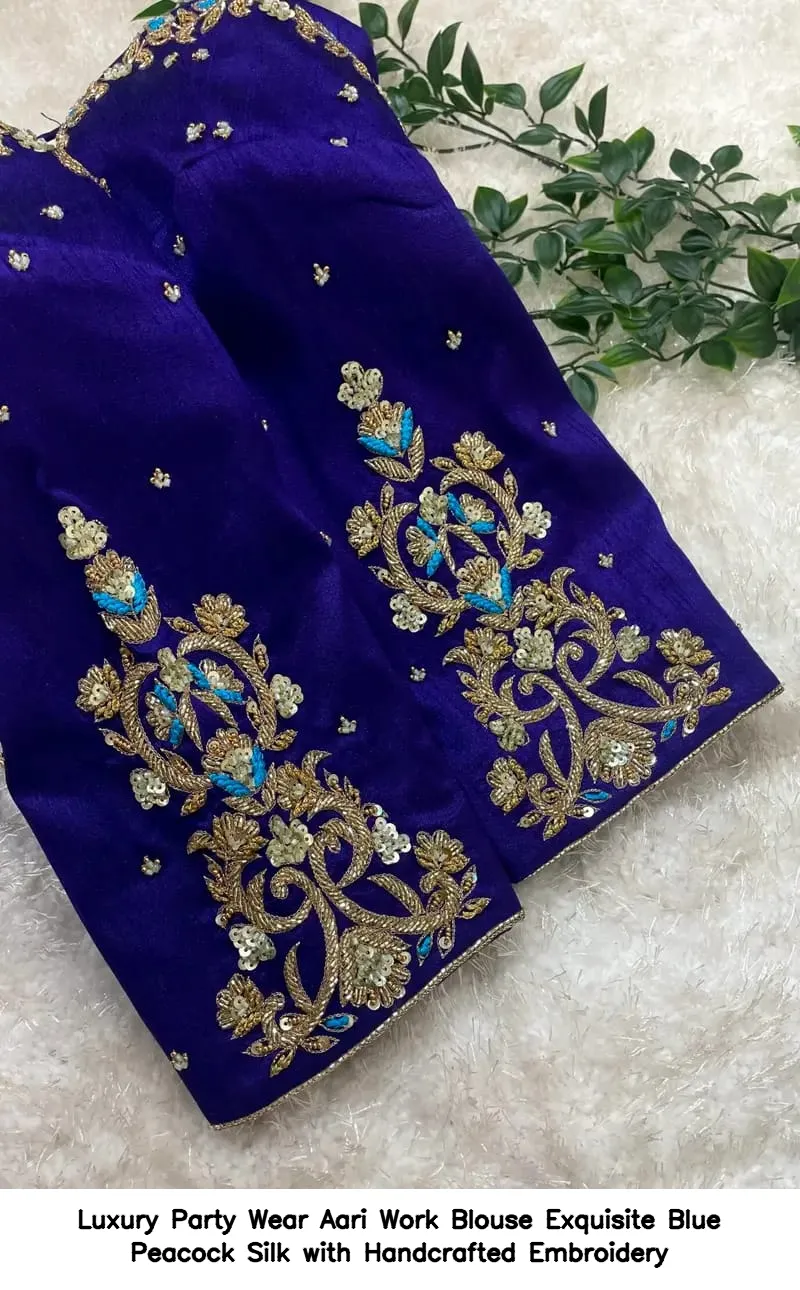 Why Choose Luxury Party Wear Aari Work Blouse – Exquisite Blue Peacock Silk with Handcrafted Embroidery?