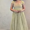 Luxury Pastel Green Maggam Work Long Frock | CustomMade Elegance for Modern Brides