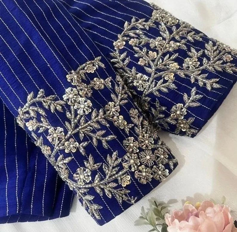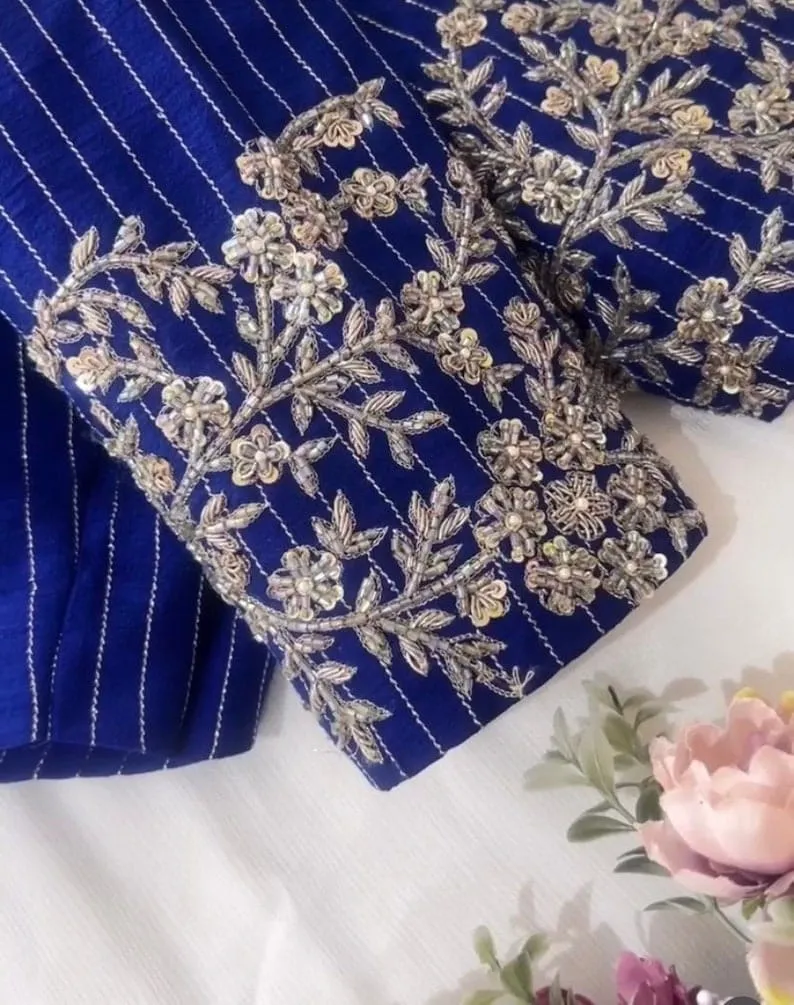 Luxury Royal Blue Heavy Maggam Work Saree Blouse Perfect for Bridal Festive Wear is designed to make you stand out. It combines elegance with intricate craftsmanship. Moreover, this blouse enhances your festive attire, making it suitable for weddings and celebrations.
