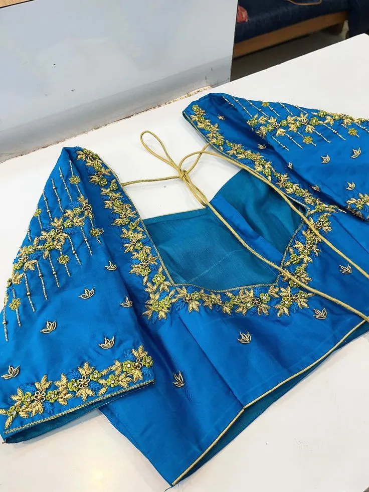 Luxury Zardosi Embroidered Blue Blouse A Designer Statement Piece