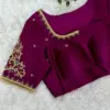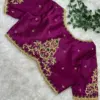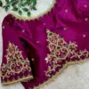 To maintain the beauty of your Magenta Pink Maggam Work Blouse – Handcrafted Zardosi Floral Jaal with Crystal Bead Tassels, we recommend dry cleaning only. Avoid direct sunlight to preserve the vibrant colors.