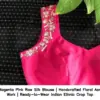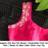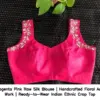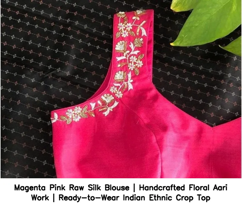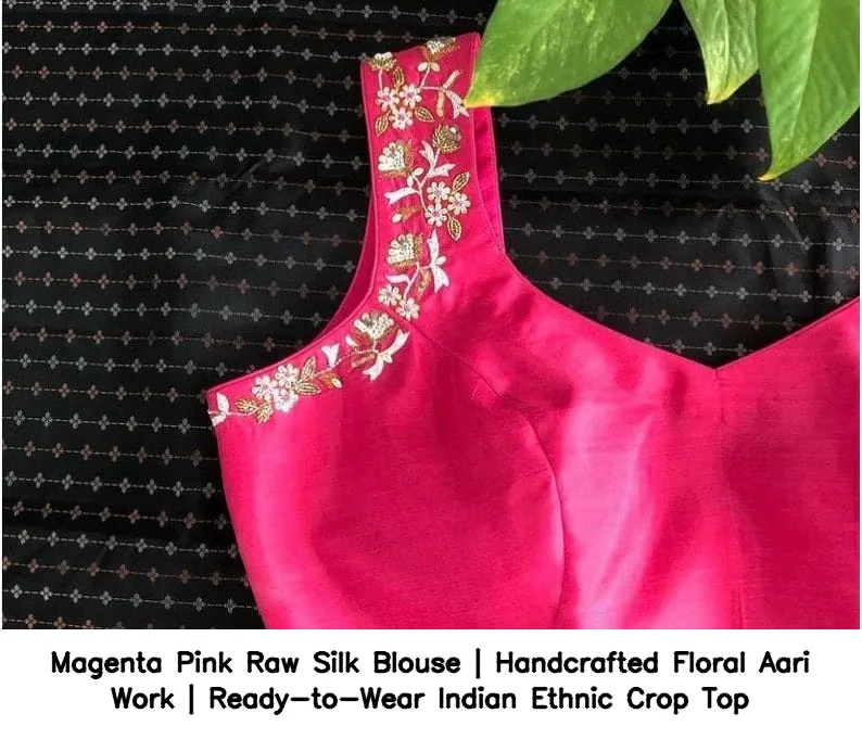 Product Name: ​​Magenta Pink Raw Silk Blouse | Handcrafted Floral Aari Work | Ready-to-Wear Indian Ethnic Crop Top