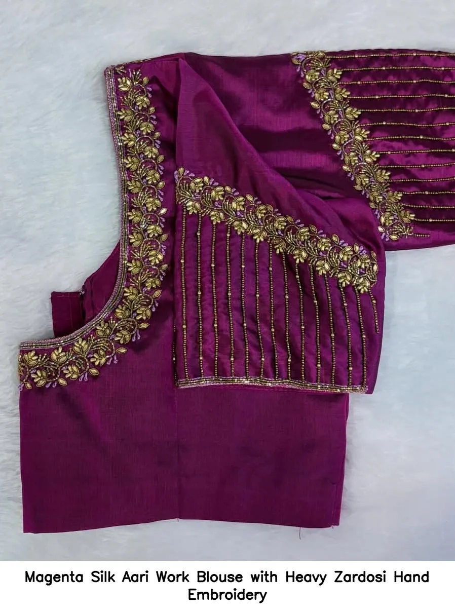 Product Name: Magenta Silk Aari Work Blouse with Heavy Zardosi Hand Embroidery