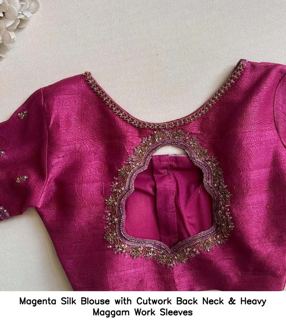 Why Choose the Magenta Silk Blouse with Cutwork Back Neck & Heavy Maggam Work Sleeves?