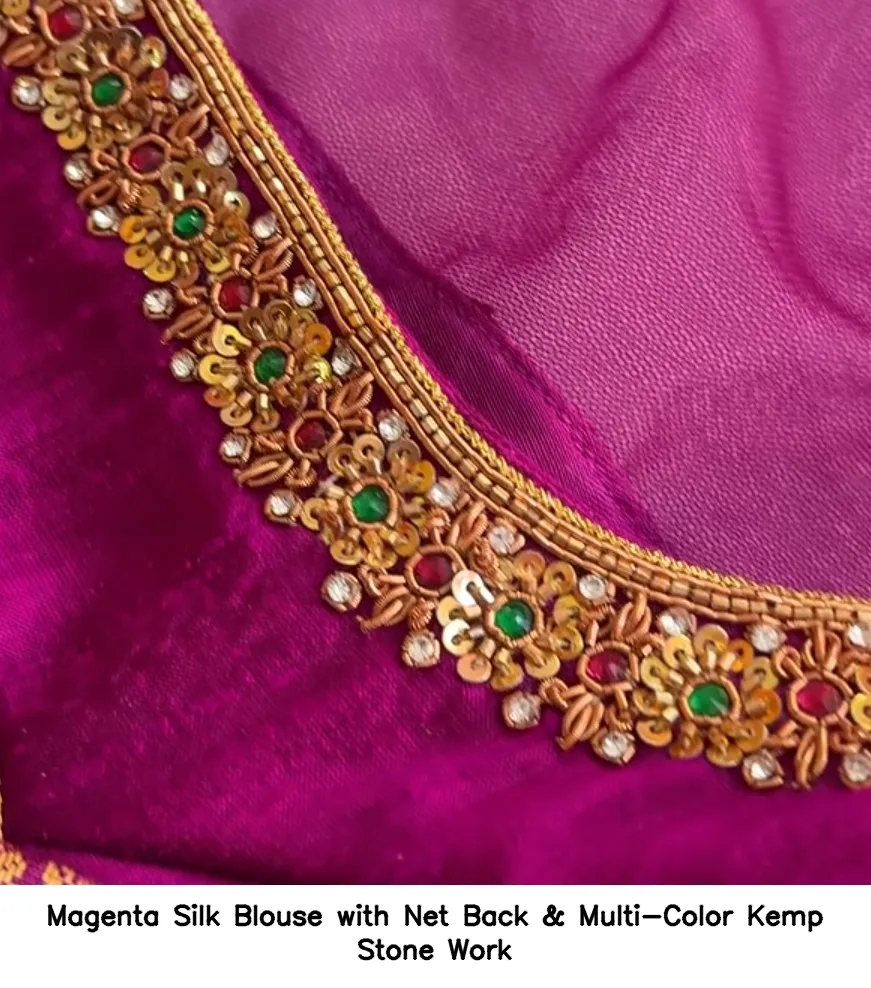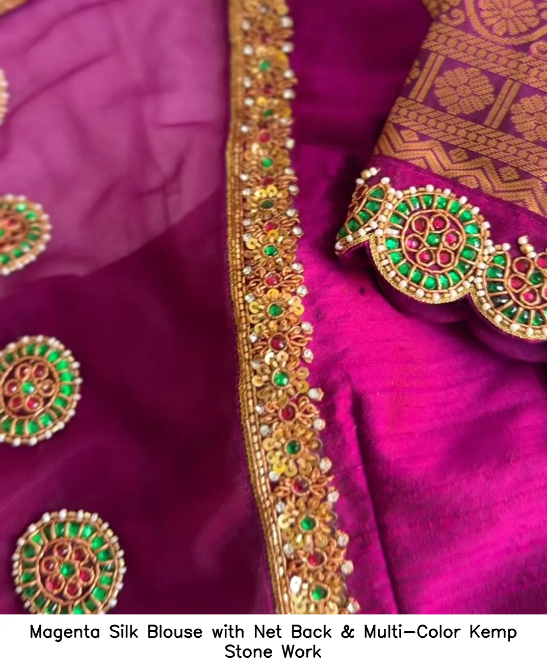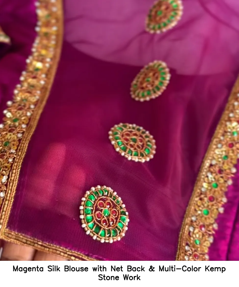 Magenta Silk Blouse with Net Back & Multi-Color Kemp Stone Work