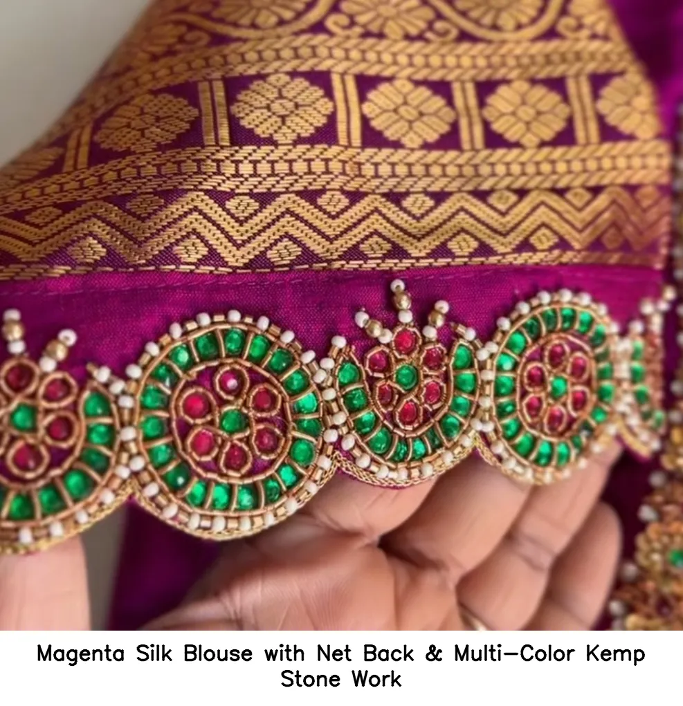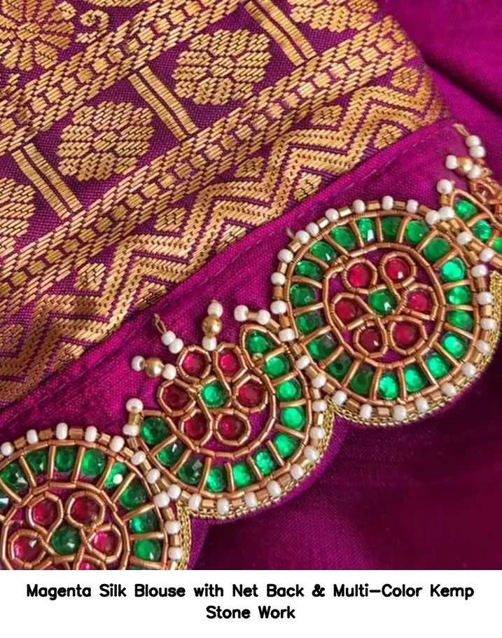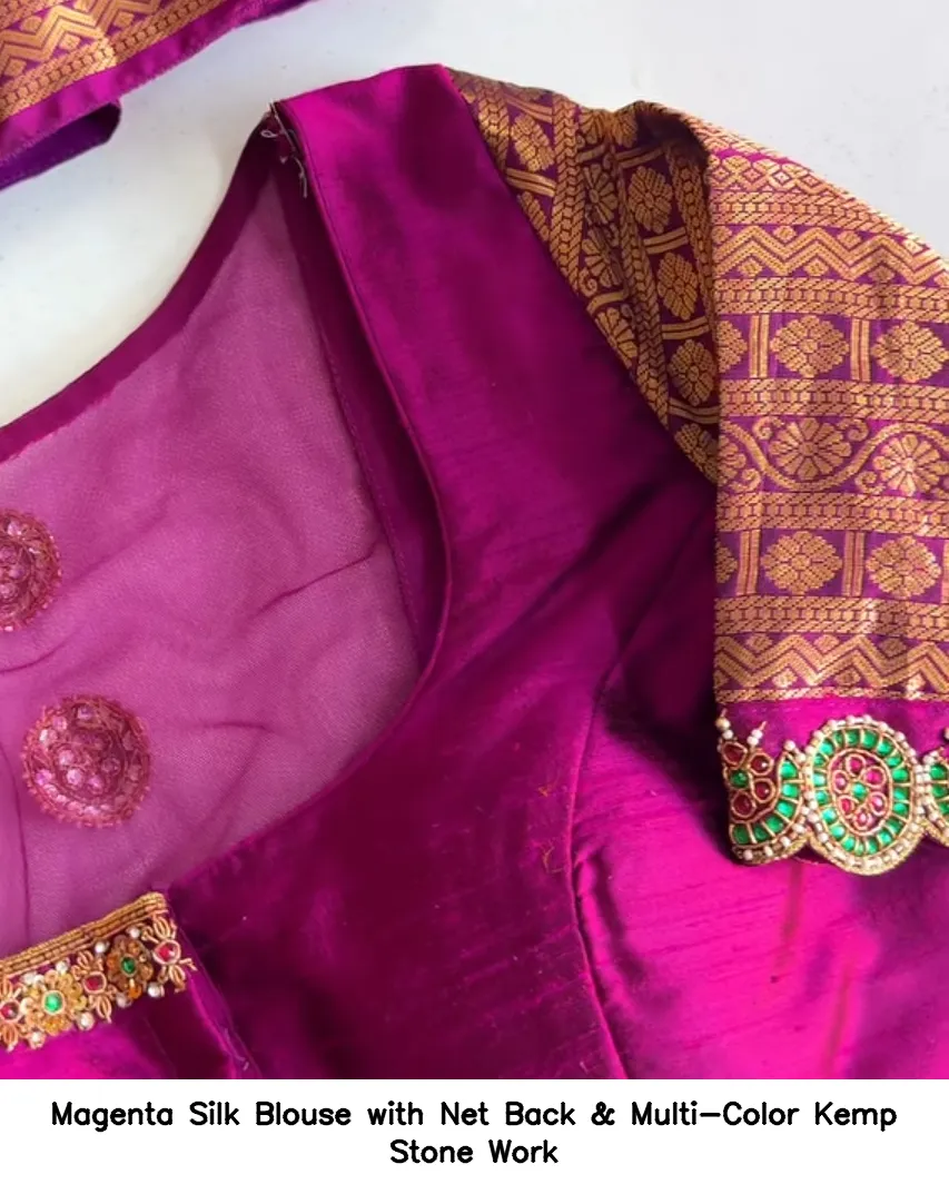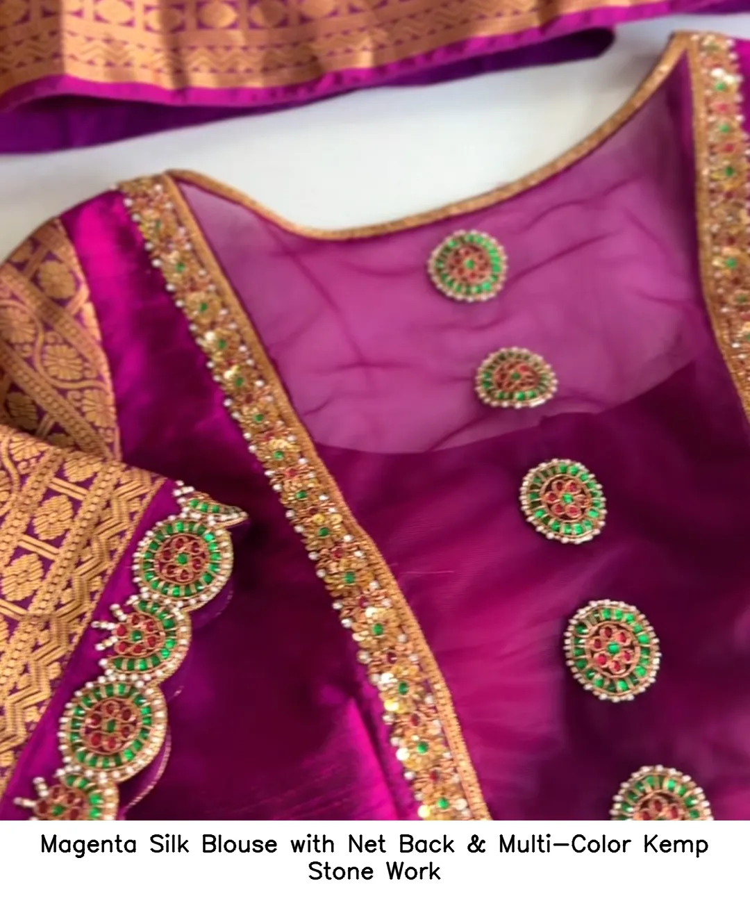 Magenta Silk Blouse with Net Back & Multi-Color Kemp Stone Work