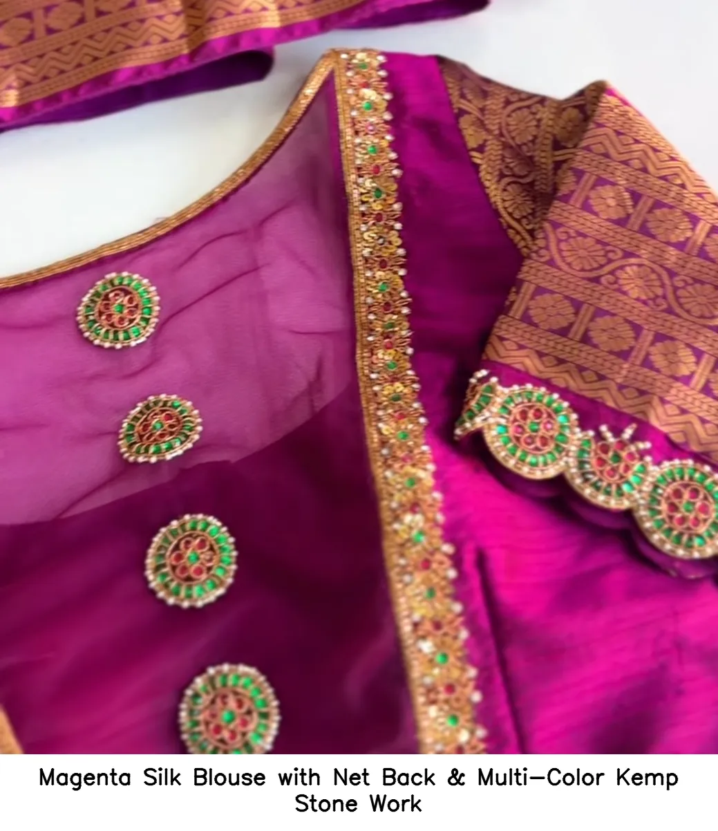 Product Name: ​​​​Magenta Silk Blouse with Net Back & Multi-Color Kemp Stone Work