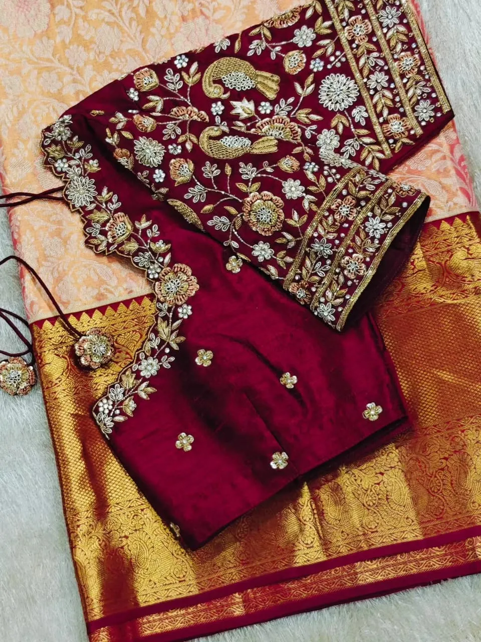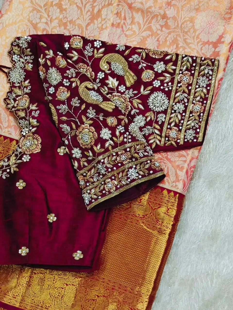 Majestic Deep Red Peacock Maggam Work Blouse Grand Royal Look in Budget | Custom Sizes Available