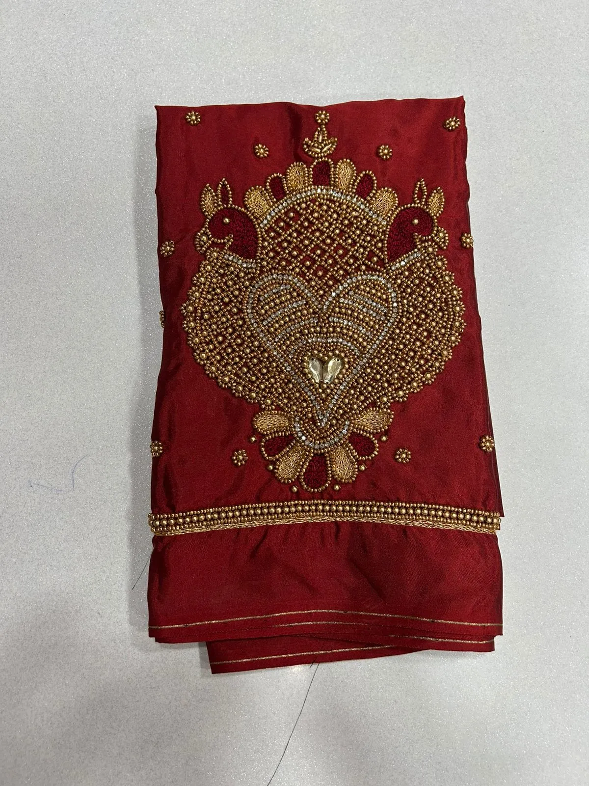 Stunning Raw Silk with Maggam Work blouse. Crafted for wedding and festive wear, pairs beautifully with silk sarees and lehengas.