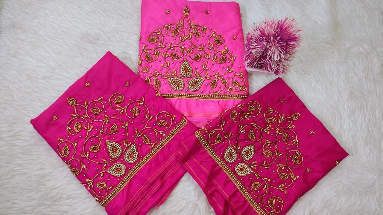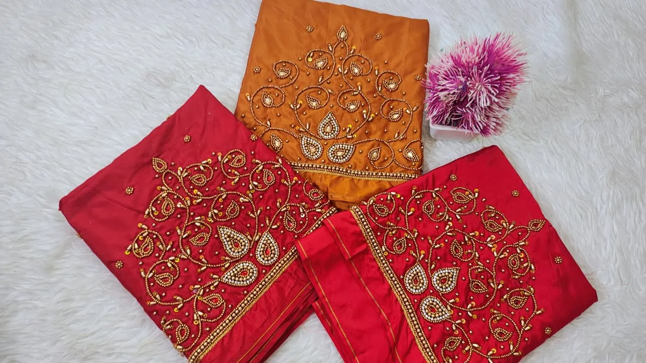 A: The blouse features high-quality fabrics that are both comfortable and durable. Enjoy the luxurious feel while showcasing stunning Aariwork designs.
