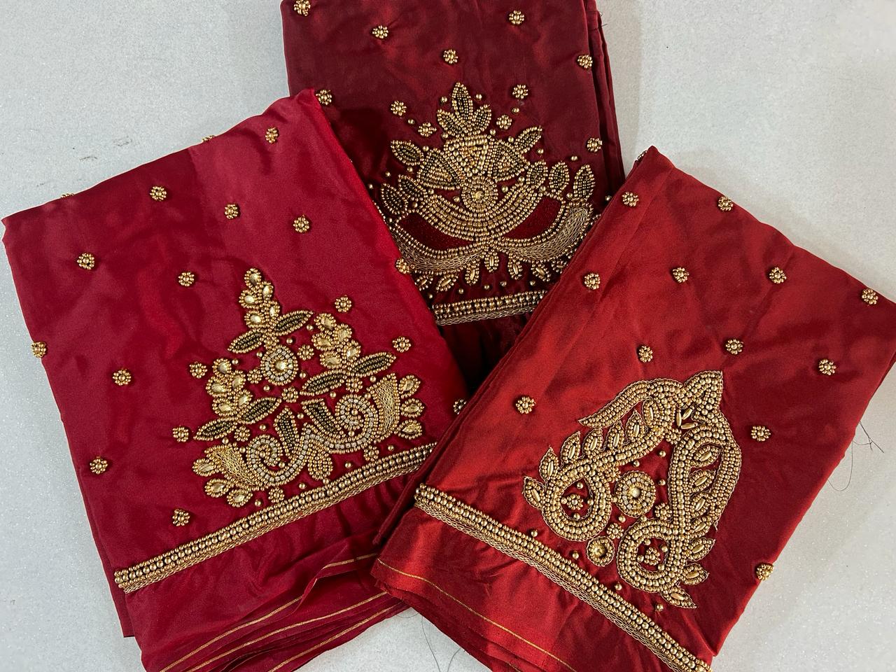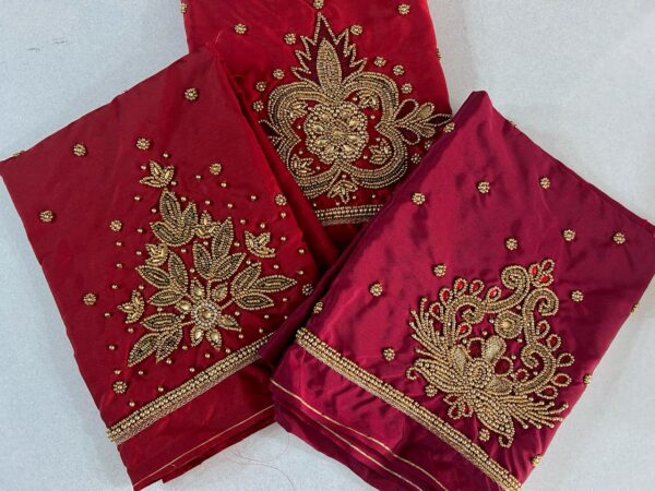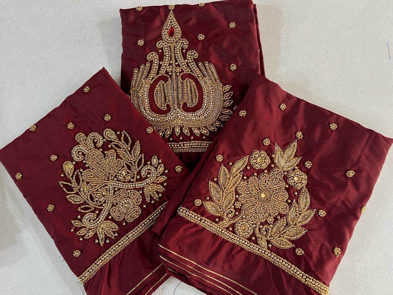 - Rich Maroon Hue: Firstly, our Majestic Maroon Couture ensemble exudes elegance with its rich maroon hue, making a bold statement wherever you go.