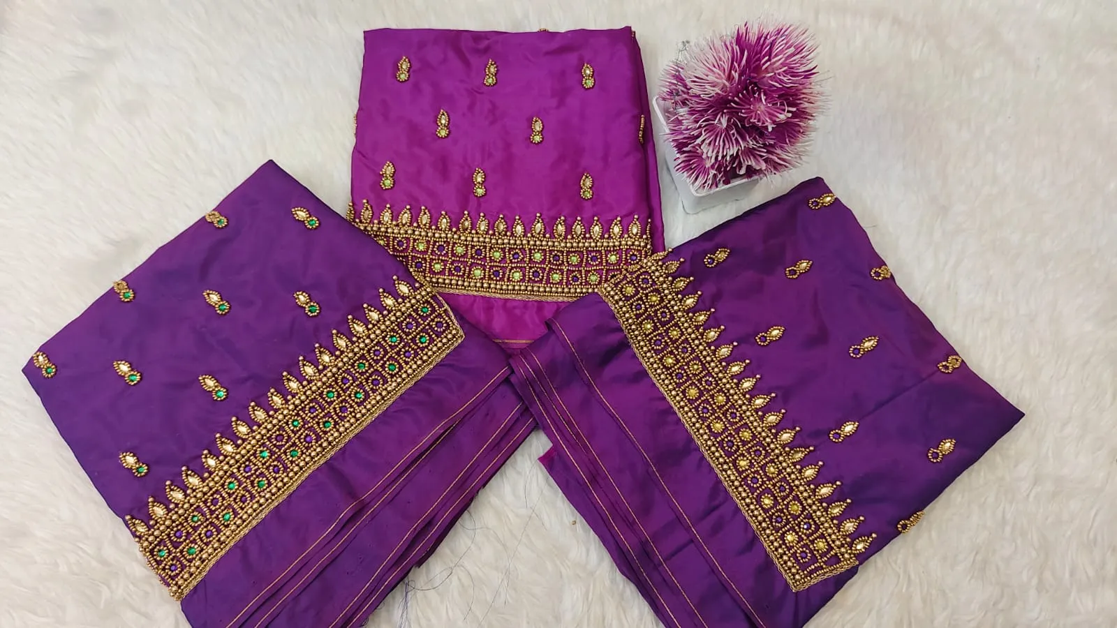 Majestic Purple Kundan Border Aari Work Blouse – Limited Time Offer!