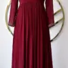 This Maroon Georgette Long Gown with Floral Hand Embroidery and Keyhole Neckline is not just a dress, but a fashion statement. Priced at 4500 INR, it is available in various colors like Red, Pink, Blue, Purple, and Wine. Enjoy the perfect blend of comfort and style with this premium georgette fabric.