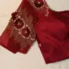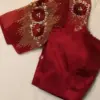To maintain the beauty of your Maroon Silk Blouse with 3D Rose Aari Work & Beaded Net Sleeves, hand wash in cold water. Avoid harsh detergents and direct sunlight. Iron on a low setting to preserve the intricate details.