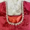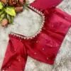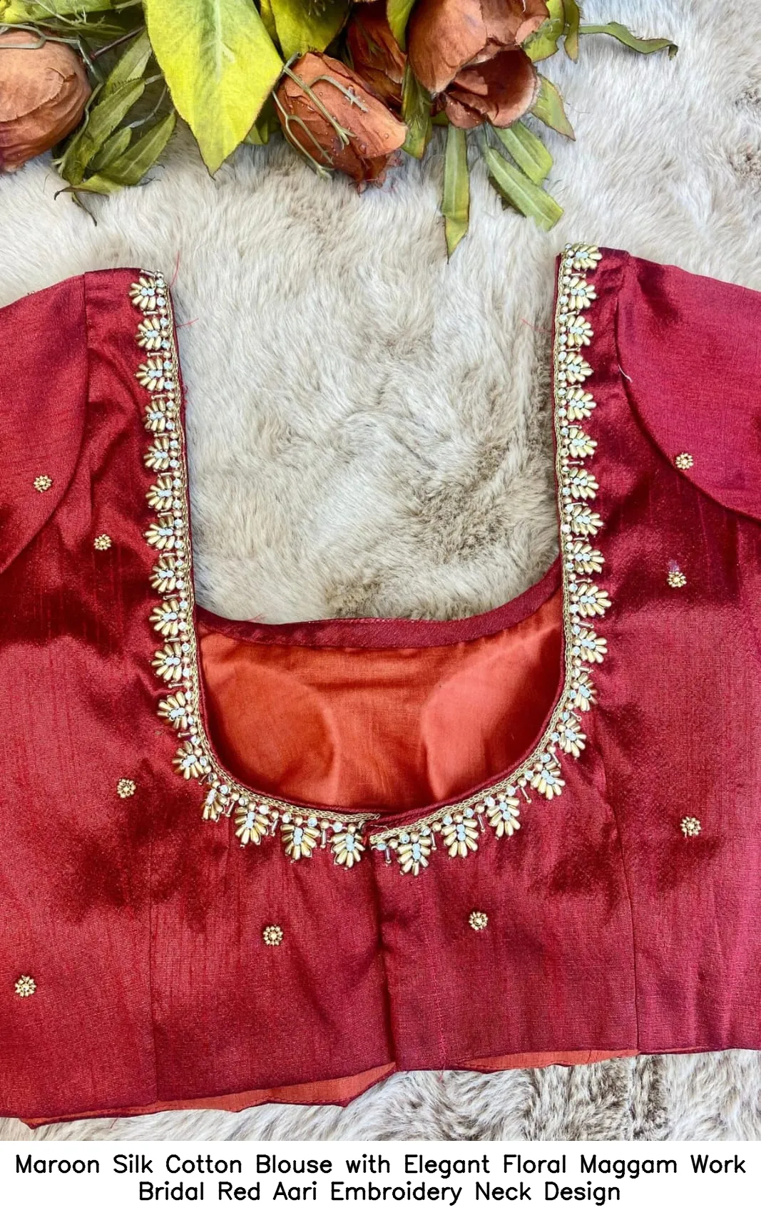 Product Name: ​​​​​Maroon Silk Cotton Blouse with Elegant Floral Maggam Work – Bridal Red Aari Embroidery Neck Design