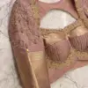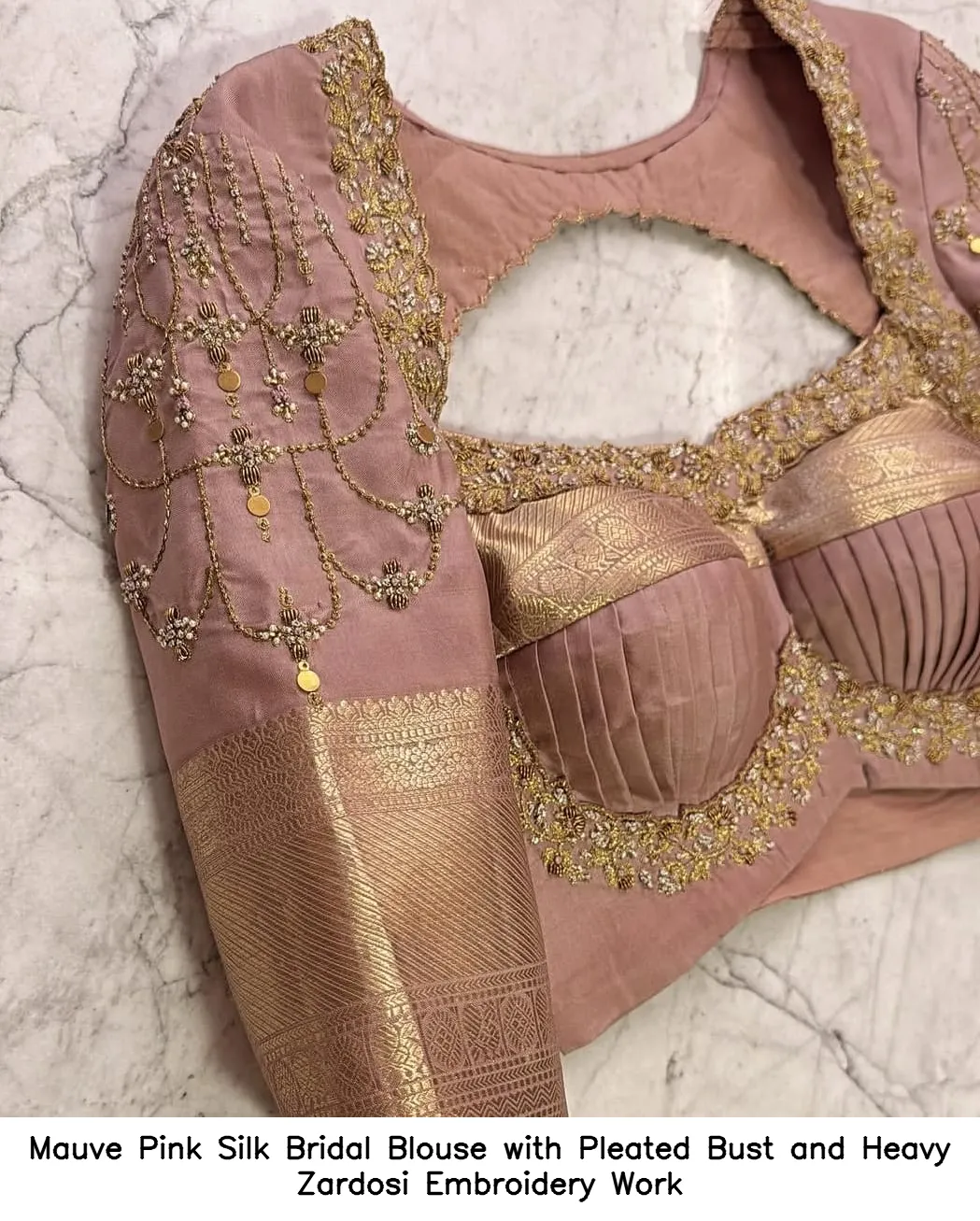 Mauve Pink Silk Bridal Blouse with Pleated Bust and Heavy Zardosi Embroidery Work