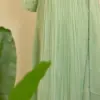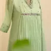 Product Name: Mint Green Georgette Pleated Anarkali Suit with Scalloped Hand Embroidery