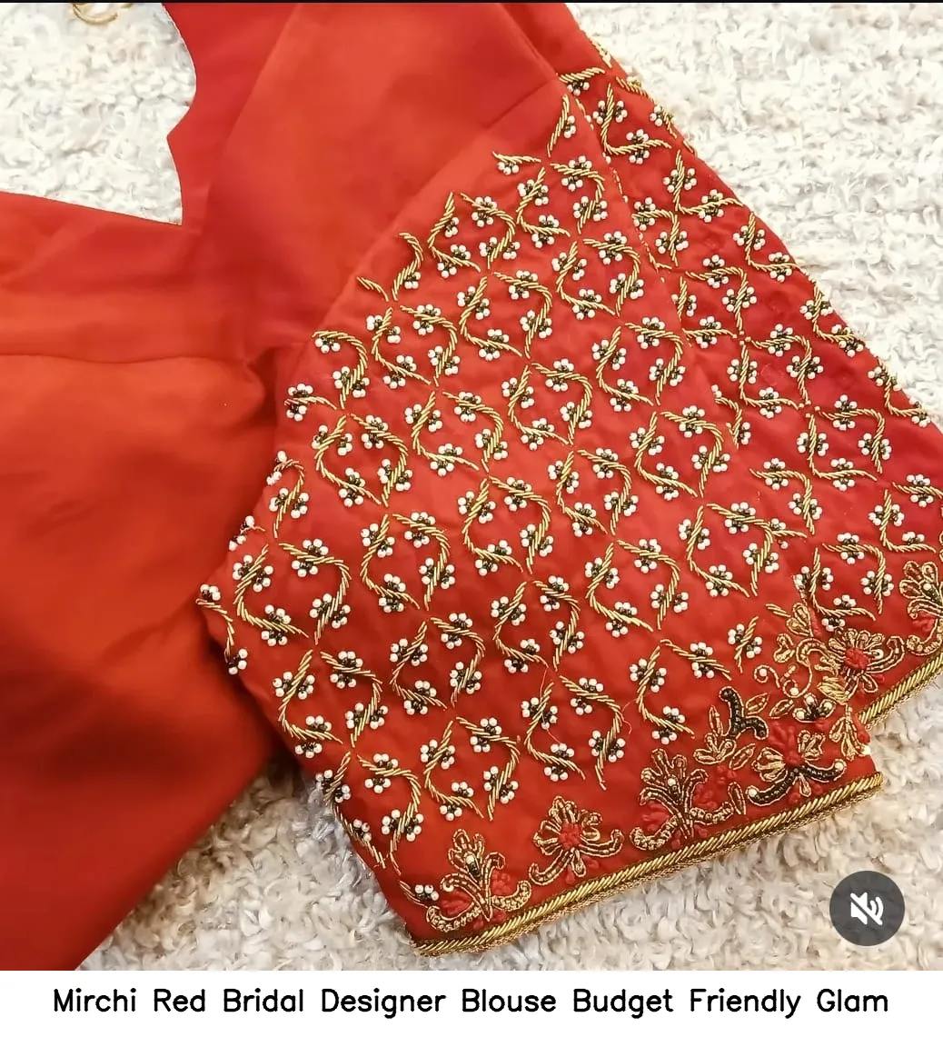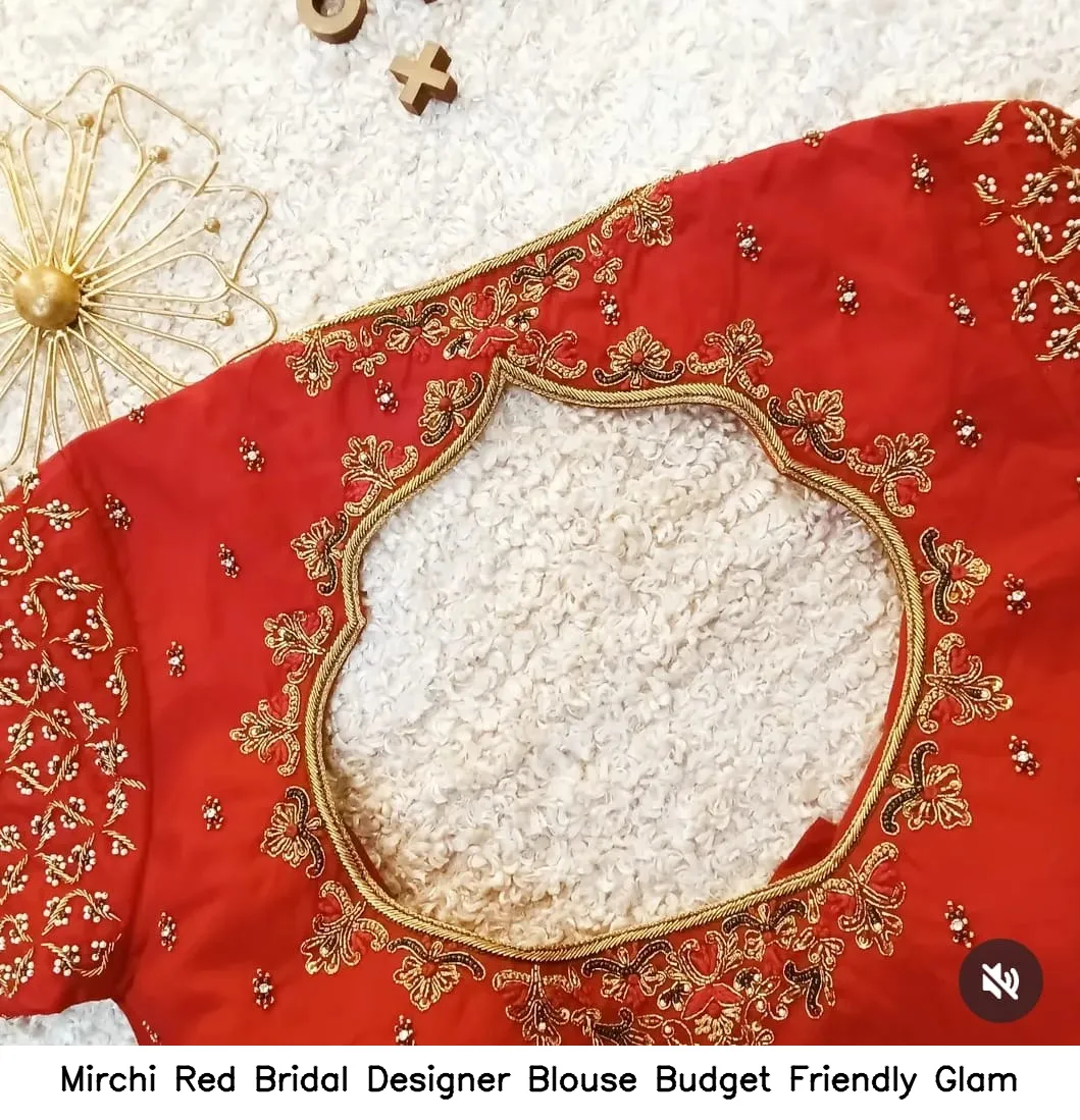 Mirchi Red Bridal Designer Blouse – Budget Friendly Glam offers a stunning look for brides. Additionally, it combines elegance with affordability. This blouse enhances your traditional outfits and ensures you shine on your special day.