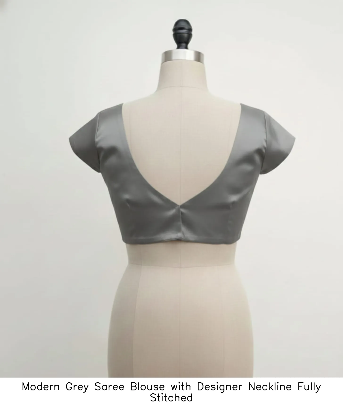 Product Name: Modern Grey Saree Blouse with Designer Neckline Fully Stitched