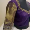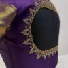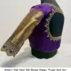 ​Modern High Neck Silk Blouse Design: Purple Gold Aari Handwork