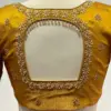 To maintain the beauty of your Mustard Silk Saree Blouse with Floral Handwork – Bridal Maggam Embroidery & Crystal Hangings, we recommend dry cleaning only. Avoid direct sunlight to preserve the colors.