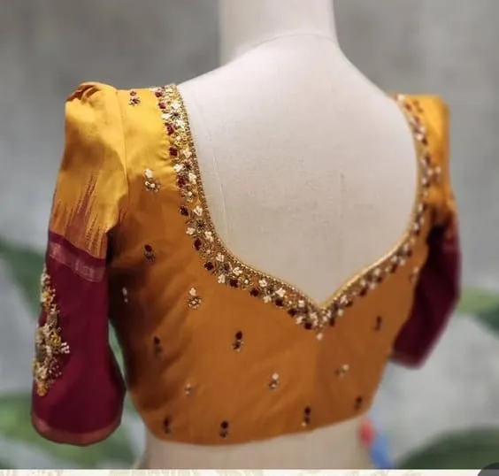 Product Name: Mustard Yellow Handcrafted Maggam Blouse Peacock Design Budget Friendly