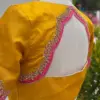 Why Choose Mustard Yellow & Pink Bridal Maggam Work Blouse – Boat Neck Designer Wear?