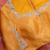 Product Name: Mustard Yellow Raw Silk Blouse with Peacock Maggam Work & Front Zipper