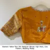 Product Name: Mustard Yellow Raw Silk Designer Blouse – High Neck, Cow Pattern, Wedding Ready