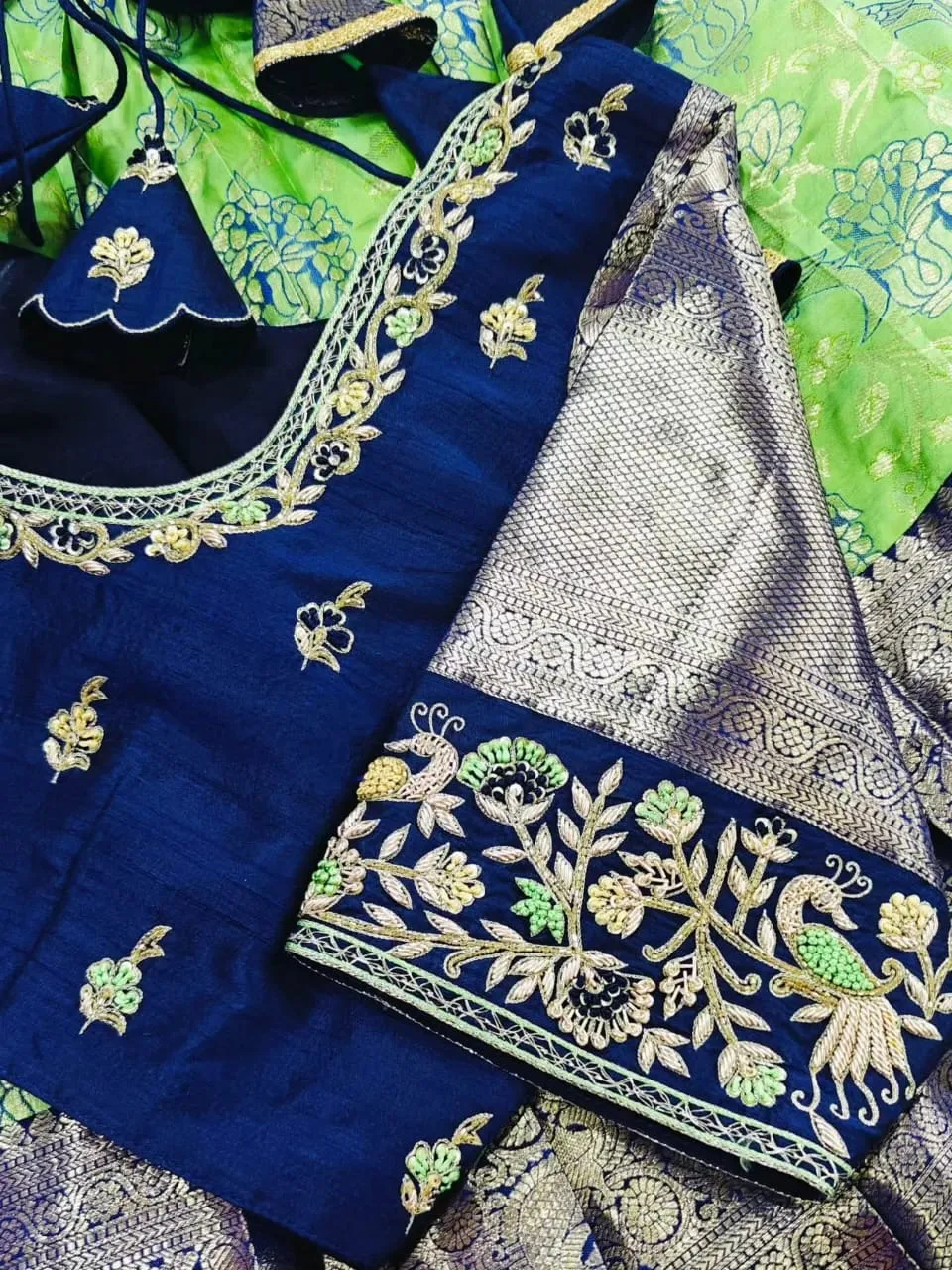 Product Name: Navy Blue Designer Maggam Work Blouse Tailor-Fit Elegant Yet Budget-Friendly