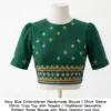 ​​​​​​Navy Blue Embroidered Readymade Blouse | Short Sleeve Ethnic Crop Top with Tassels | Traditional Geometric Pattern Saree Blouse with Back Opening and Dori