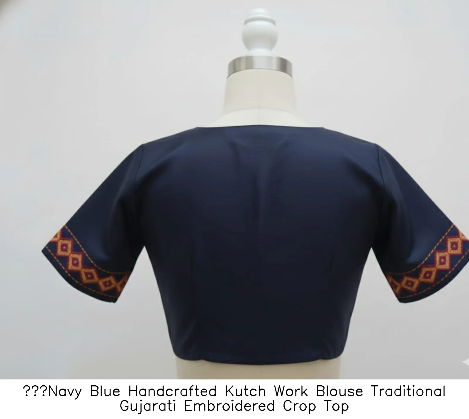 Product Name: Navy Blue Handcrafted Kutch Work Blouse Traditional Gujarati Embroidered Crop Top