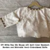 Product Name: ​Off-White Raw Silk Blouse with Multi-Color Beadwork Borders and Minimalist Hand-Embroidered Buttis