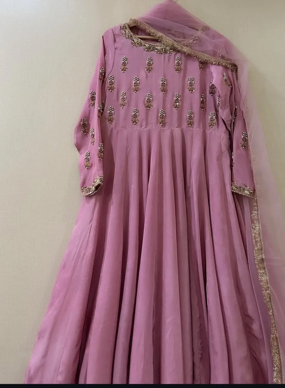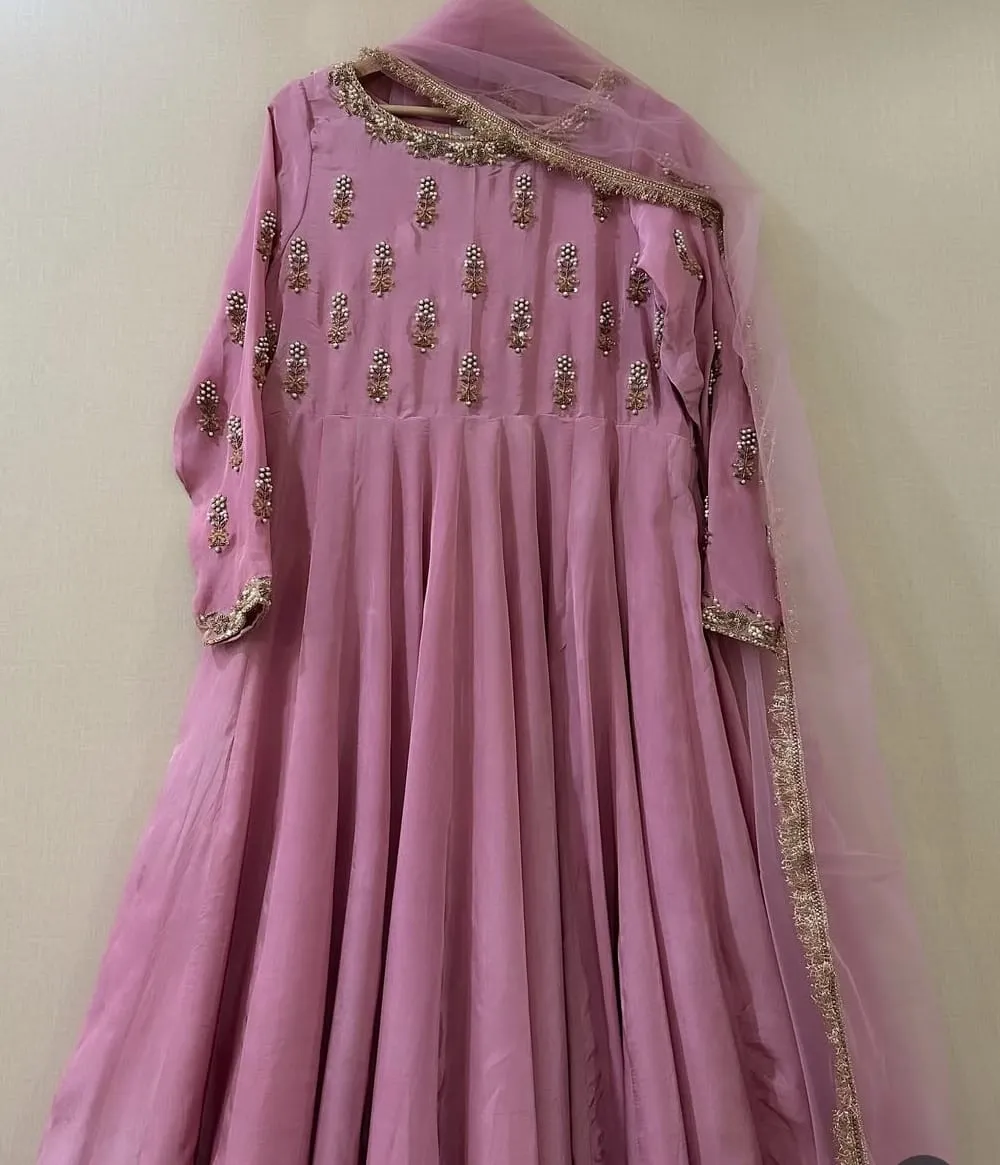 Onion Pink Bridal Long Frock Elegant Designer Wedding Wear Gown for Brides