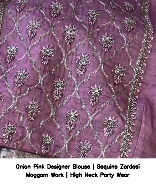 Why Choose Onion Pink Designer Blouse | Sequins Zardosi Maggam Work | High Neck Party Wear?