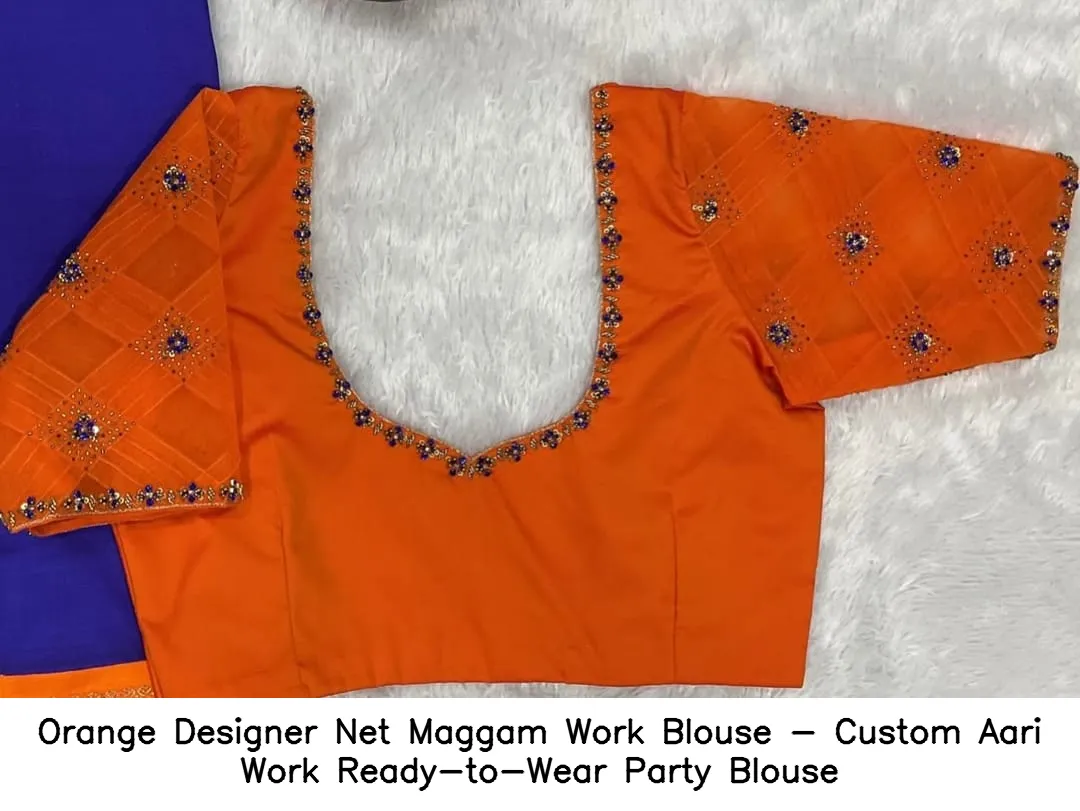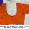 Orange Designer Net Maggam Work Blouse – Custom Aari Work Ready-to-Wear Party Blouse