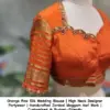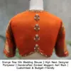 Product Name: Orange Raw Silk Wedding Blouse | High Neck Designer Partywear | Handcrafted Zardosi Maggam Aari Work | Customised & Budget-Friendly