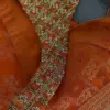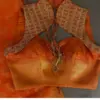 Orange Silk Halter Neck Blouse with Gold Zardosi Work and Cut-Out Back Design