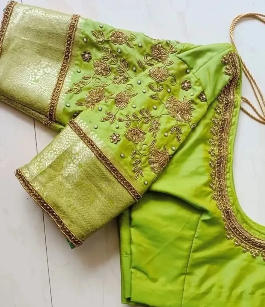 Q: What materials are used in the Green Bridal Blouse – Vibrant Elegance for Your Special Day?