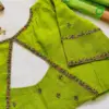 The Parrot Green Zardosi Maggam Work Blouse is made from high-quality half pattu fabric. It is available in sizes XL, XXL, and 3XL. Choose from a vibrant color range including Red, Pink, Blue, Purple, and Wine. To explore more options, browse our collection.