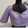 Pastel Lavender Silk Blouse with Elegant Aari Maggam Work | High Neck Design offers a unique blend of style and sophistication. Additionally, this blouse enhances your ethnic wardrobe effortlessly. You can wear it on various occasions, making it a versatile choice.