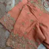 Q: How should I care for my Peach Bridal Silk Zardosi Blouse – Front Open Deep Neck?